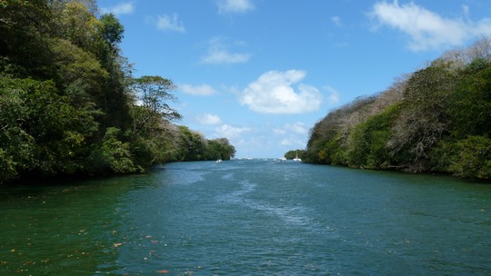 Le temps est superbe. Pas un nuage, pas de vent. On ne peut rêver mieux. Le catamaran longe la côte pour nous amener auprès d’une cascade en fond de chenal. Vu le nombre de catamarans qui s’y engouffrent, c’est la sortie classique.