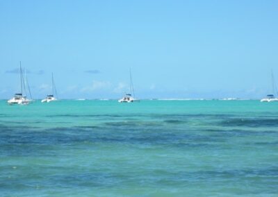 Au sortir du chenal dans la foulée d’autres bateaux, nous rejoignons l’endroit de mouillage où nous allons pouvoir nous jeter à l’eau avec ou sans palmes et masque. Les dauphins de la brochure ne sont pas au rendez-vous, les quelques poissons aperçus semblent bien tristes pas de couleurs seul un poisson zébré passe en vitesse.