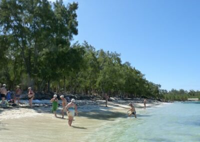 La plage est peuplée de tous les touristes arrivés par bateaux, mais comme elle est grande, pas de bousculade. Un peu de farniente sur le sable, Ghislaine, Andrée et Bernard vont faire une incursion dans le bois pour découvrir l’autre côté de l’île.